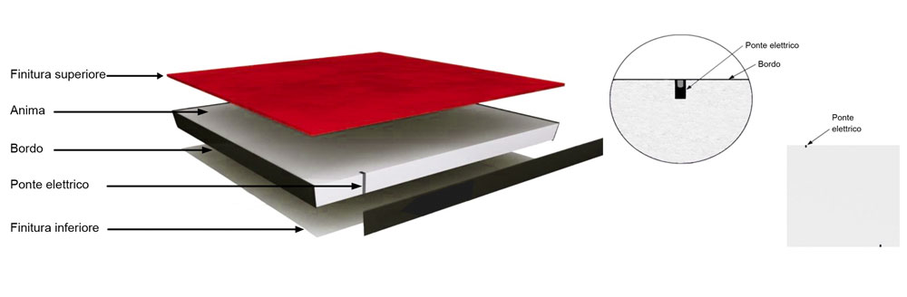 Il materiale con queste caratteristiche è statico dissipativo ed in questo caso è consigliabile effettuare l’incollaggio sul pannello con adesivo conduttivo, creare il ponte elettrico tra l’estradosso e l’intradosso del pannello, utilizzare nuovamente il collante conduttivo per l’applicazione del foglio di alluminio nella parte inferiore del pannello.