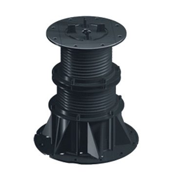 » Adjustable supports, composed of a jack head threaded in its bottom part. The base is concave on the bottom and has a non-slip surface. The side holes allow water draining.
