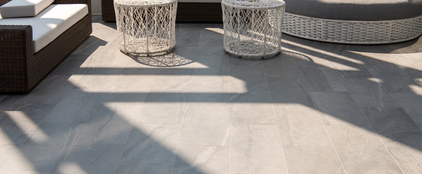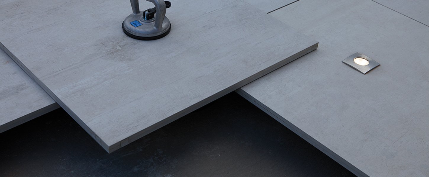 TWIN FLOORoutdoor panel is made by the combination porcelain or stone top finish with adhesive to a reinforced 15 mm thick layer made of a homogeneous and fibre-reinforced structural core, whose density is 2.200 Kg/m3.