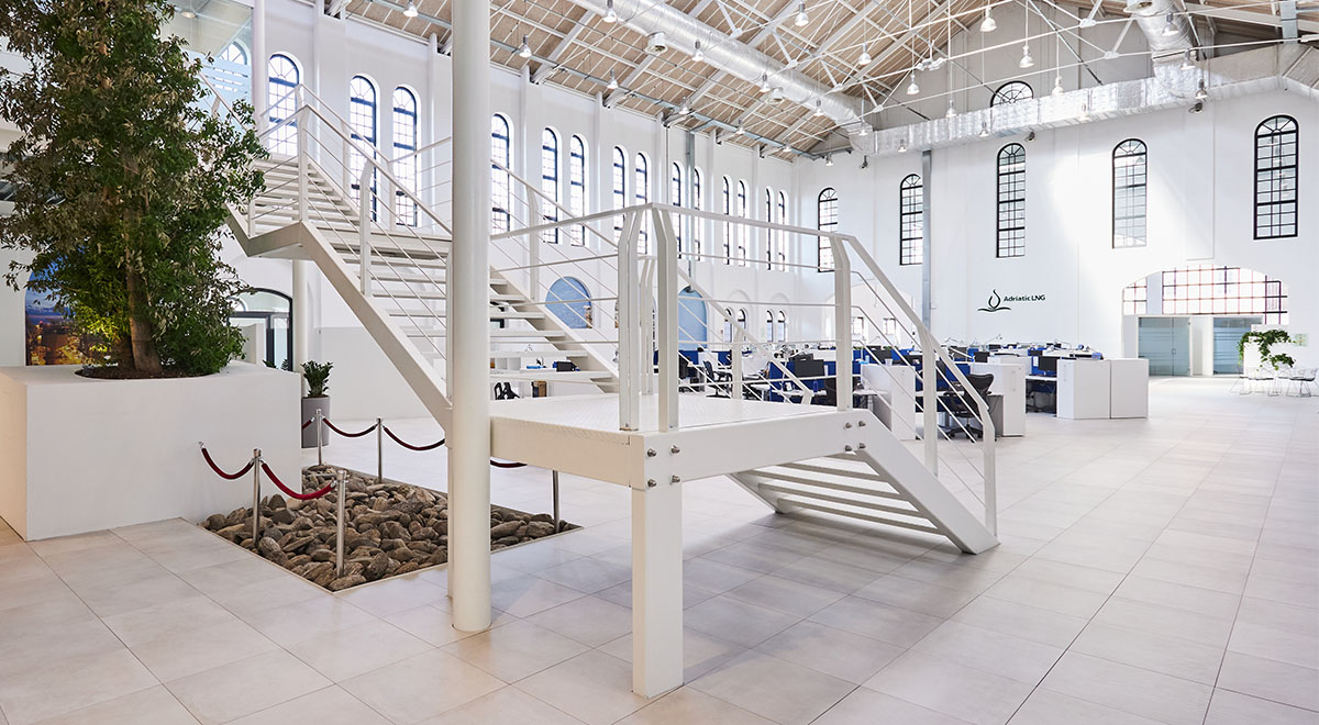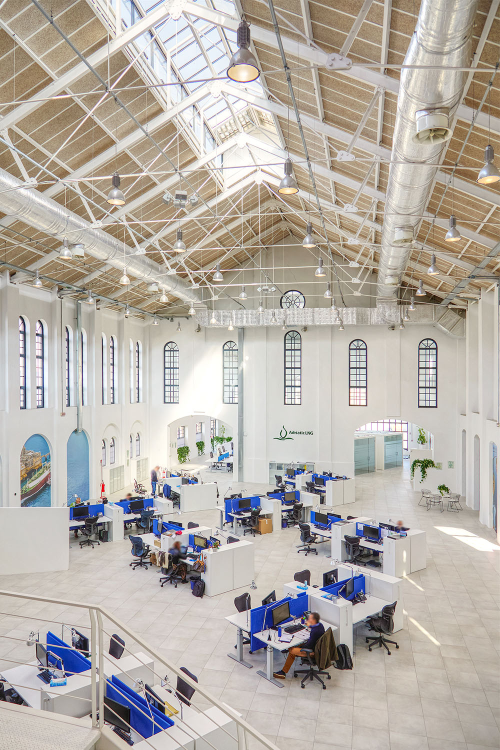 To conserve, to appropriate the pre-existing while respecting its historical authenticity, to hand down to posterity aware of the importance of leaving evidence. These are the premises that guided the realization of the new Adriatic LNG work hub, an intervention perfectly integrated in the original architecture, where the renovation has mainly filled the gaps in terms of plant engineering and space organization.