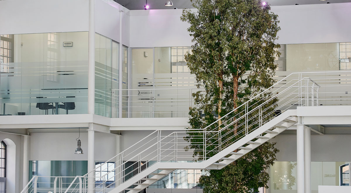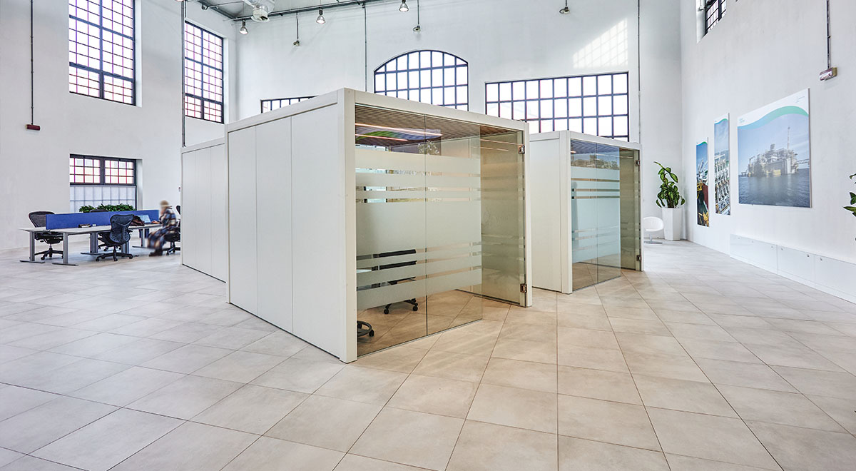 A structure of the past for the economy of the future, the new Work Hub Adriatic LNG is established inside a 20th-century industrial complex, a sugar mill until 1978, then an exhibition space (Pavilion B) of the Cen.Ser Service Center in Rovigo. The building, a testament to the construction quality of the time, has been converted by the Nesite Interior division into a modern and functional space that brings together the company’s activities in direct support of the regasification terminal’s operations, off the coast of Veneto.