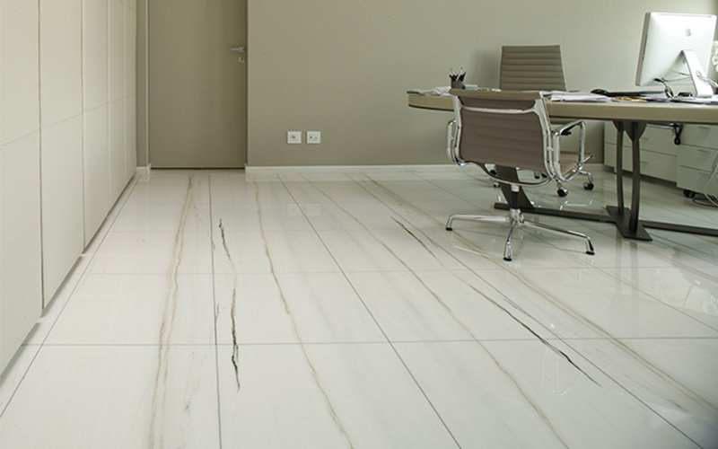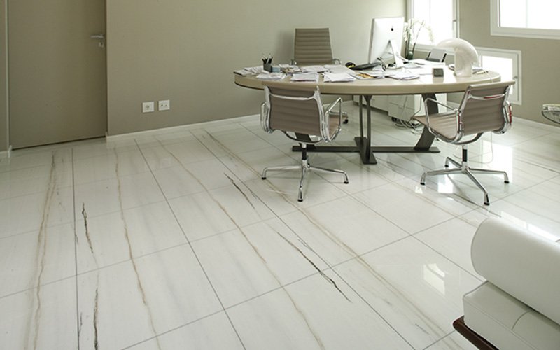 360 m2 raised floor with covelano white marble upper covering, made of panels 60×60 cm with high density calcium sulphate core, 28 mm thick;