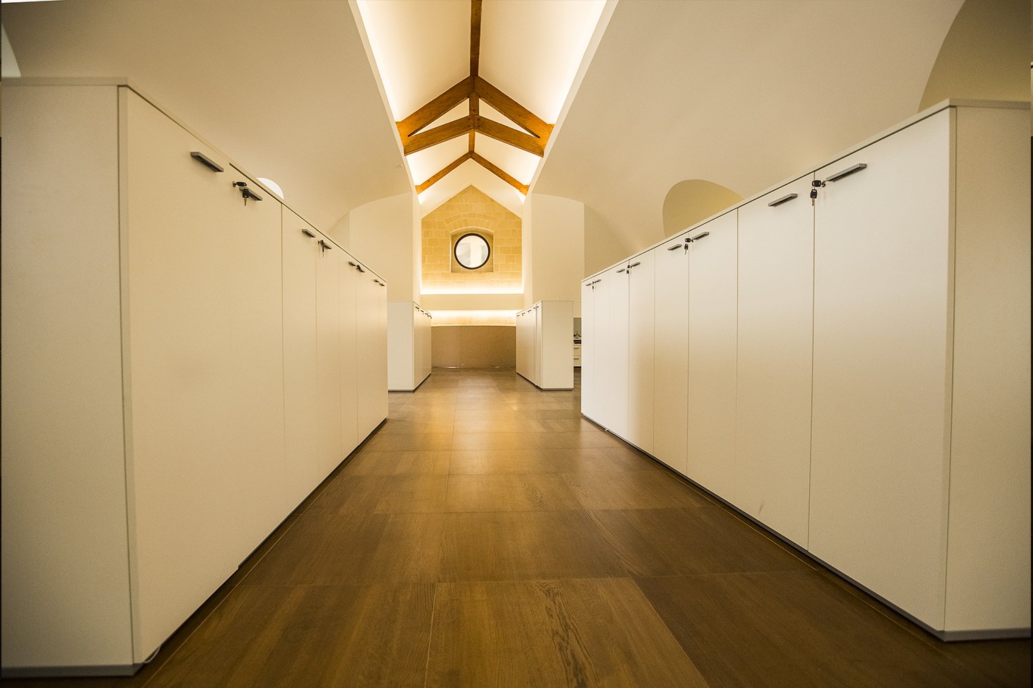 This type of wall has been designed to simplify assembly and inspection operations, making subsequent variations of the original configuration of the spaces extremely easy. A tailor – made aluminum profiles to connect the floor to the mobile wall, have also been made.