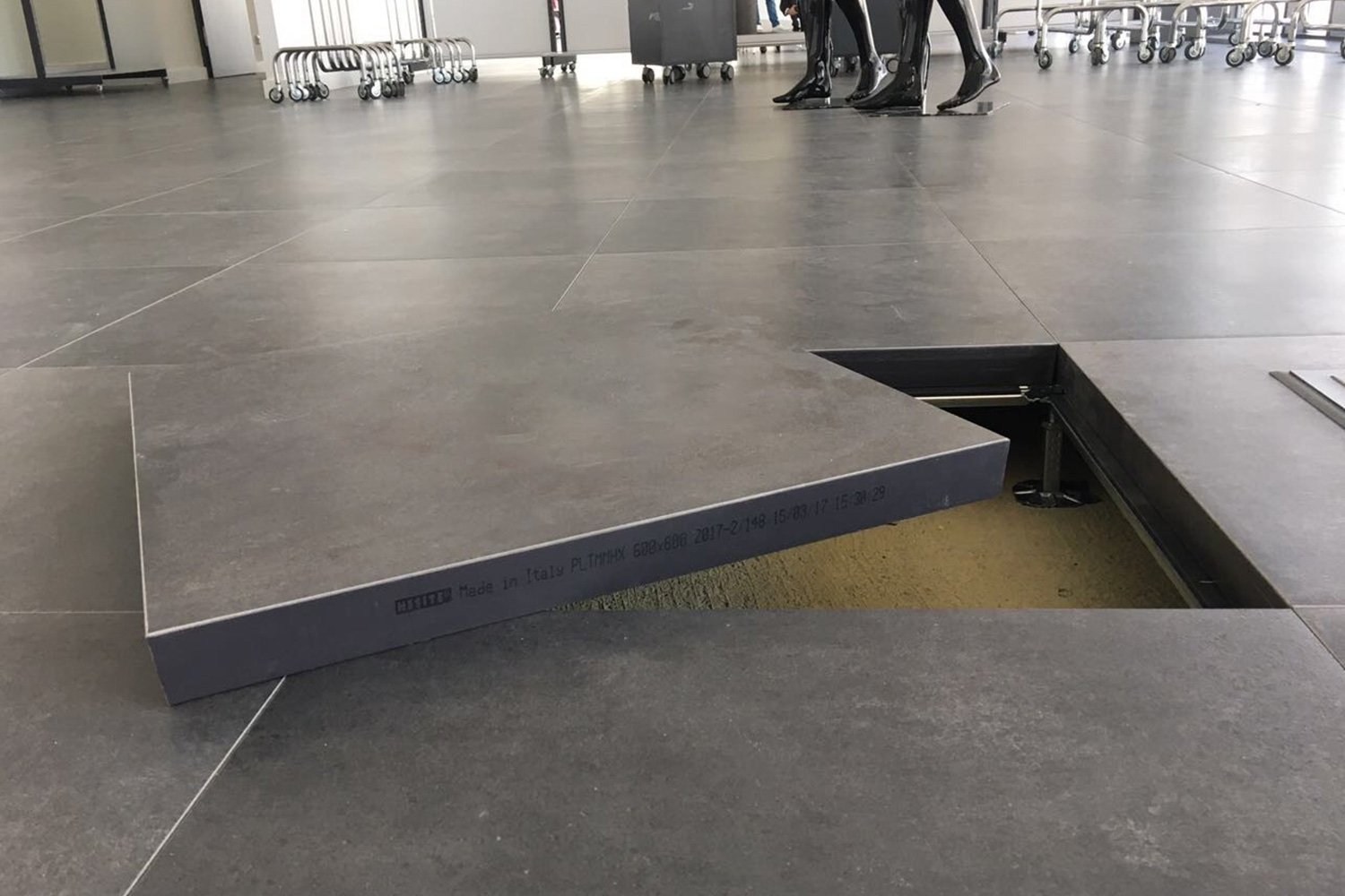 7.300 sqm of raised floor, panels 60 x60 cm, with high density chipboard core and ceramic upper covering;