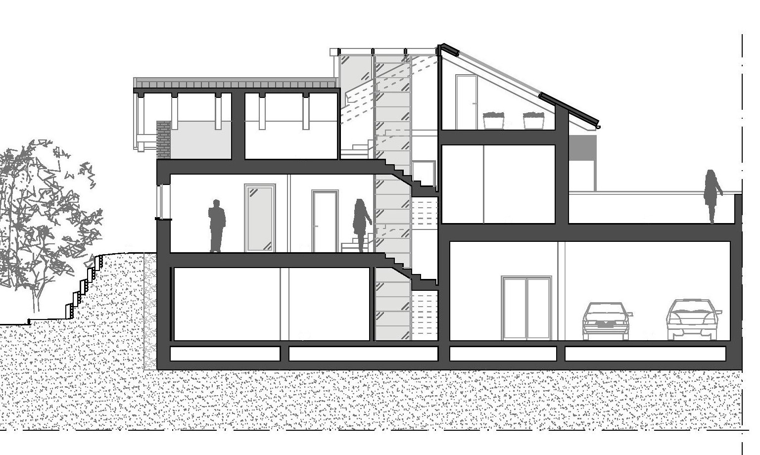 Fue la realización de una vivienda unifamiliar en la localidad de Asti, Piemonte, cuidada por el arquitecto Paolo Ostino. El edificio se desarolla en niveles internos escalonados en altura, de manera que los pisos siguen la pendiente natural del terreno de la intervención.