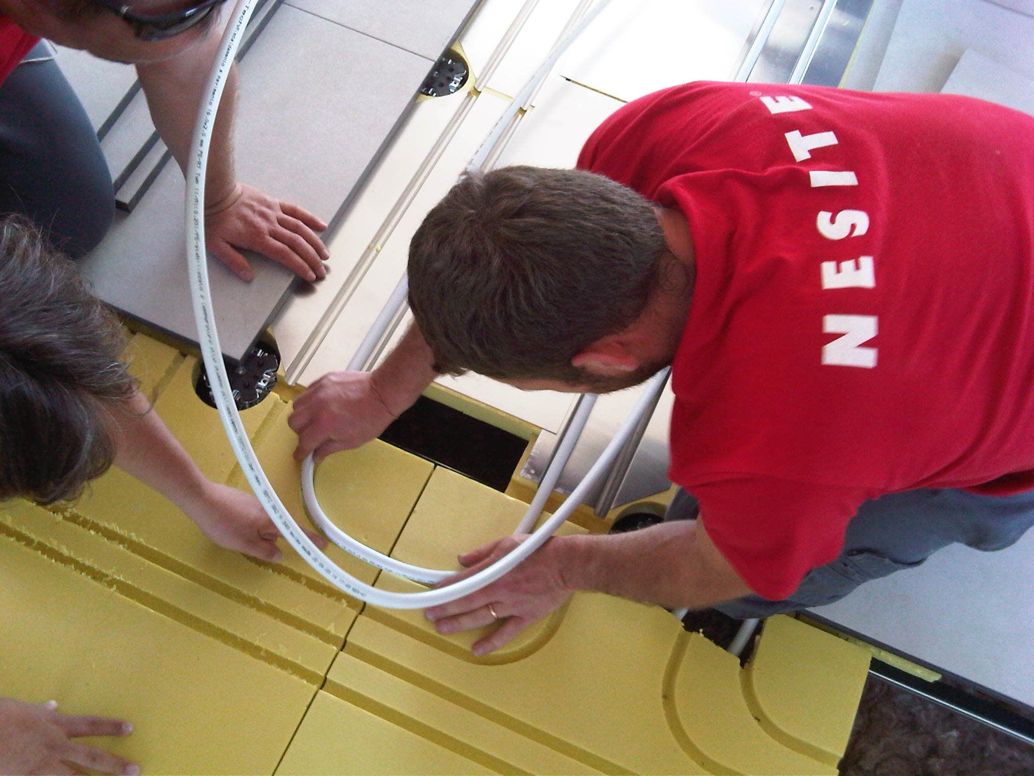 El suelo elevado radiante Nesite, desarollado en colaboración con Floortech, se instaló por primera vez en un proyecto residencial.