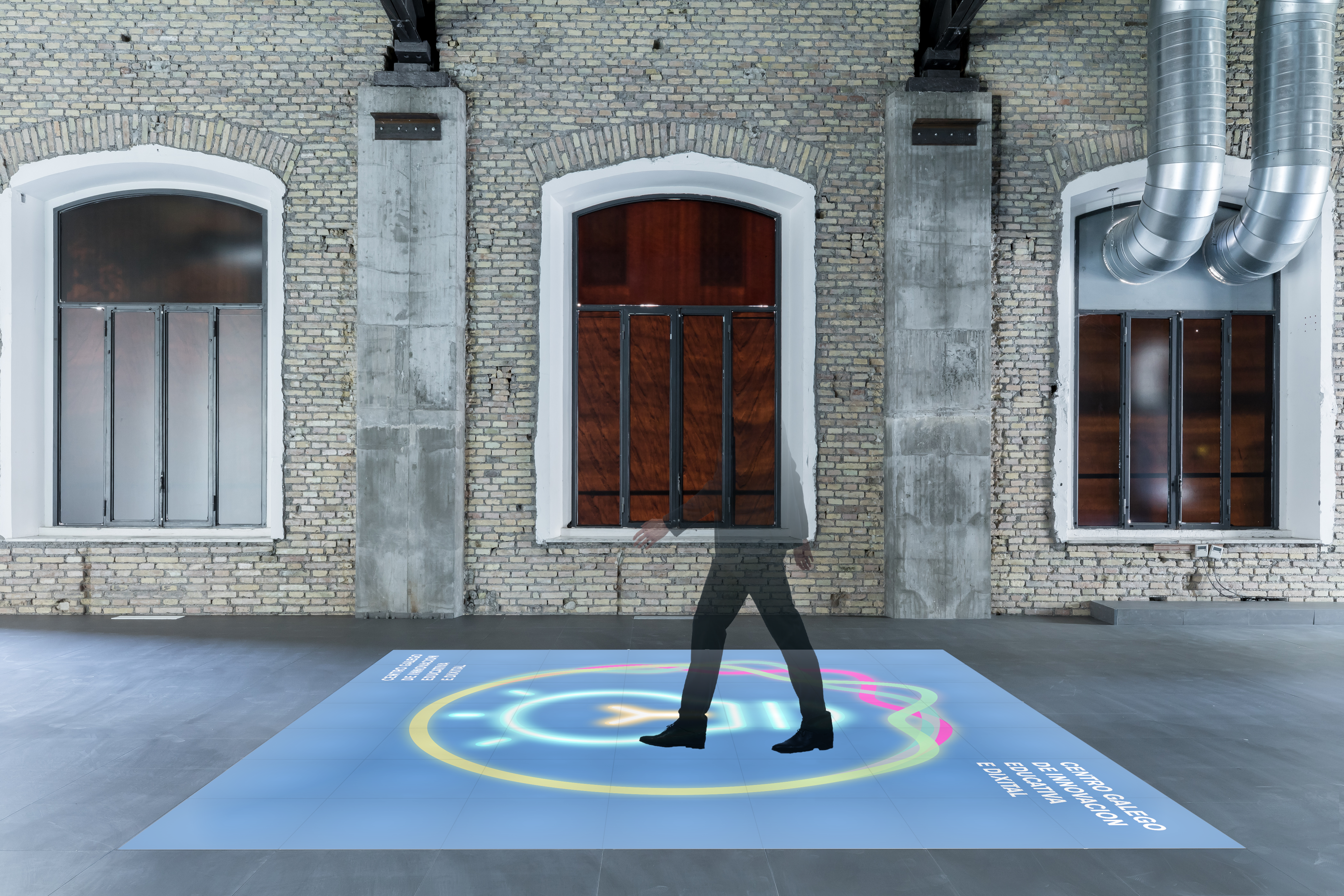 JUNO VISUAL mantiene las prerrogativas de ingeniería de planta y estéticas del suelo técnico, ocultando completamente el gabinete bajo los paneles, para efectos visuales de impacto, tanto con fines de entretenimiento como con fines de branding y/o promoción.
