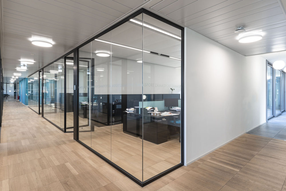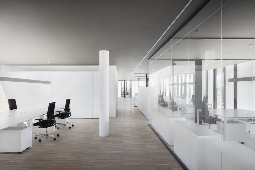 El suelo elevado Nesite en el proyecto de oficinas de la sede Sanlorenzo en Ameglia, diseñado por el equipo Lissoni Casal Ribeiro. el proyecto sanlorenzo yachts Inmerso en el verdor del parque natural de Montemarcello-Magra y con vistas al río del mismo nombre, en Ameglia se levanta el primer volumen realizado por el equipo de Lissoni