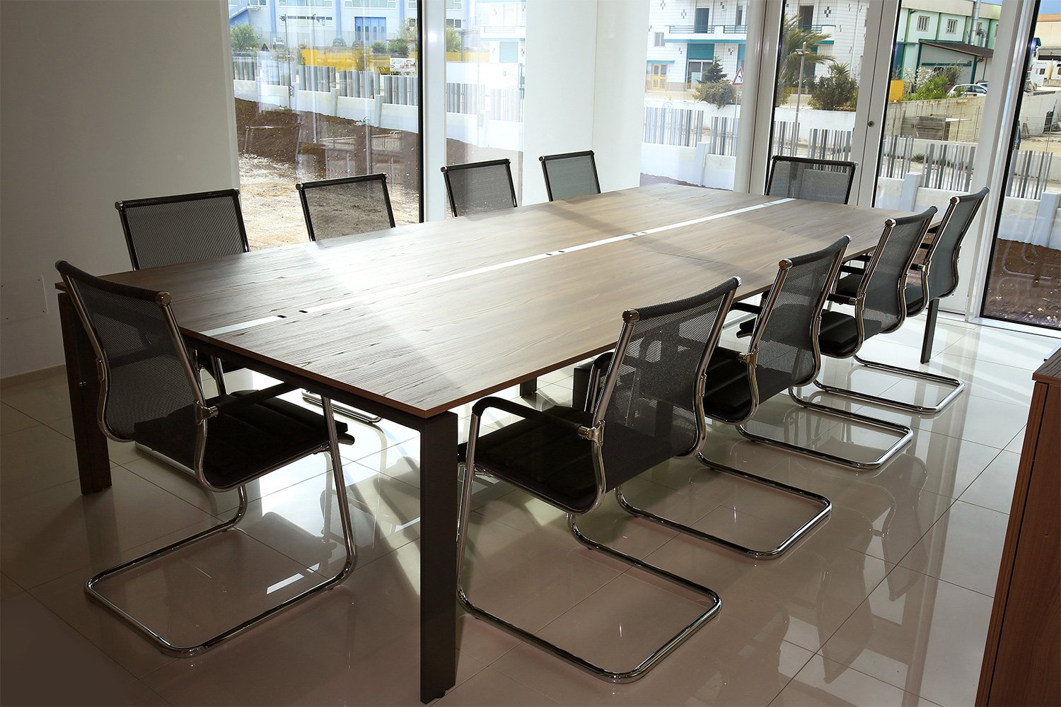 E’ stata quindi fatta una scelta accurata dei materiali per soddisfare questa richiesta: per il pavimento sopraelevato è stato selezionato un gres levigato di colore bianco, con effetto molto lucido.