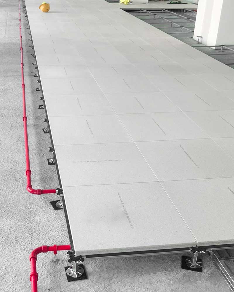 En este contexto, la integración del suelo elevado se convierte en una solución fácil en la realización de la infraestructura necesaria, facilitando también futuros desarrollos y/o modificaciones. De hecho, las instalaciones se colocan en el plenum inferior, de varias alturas, donde los diseñadores pueden disponer de compartimentos técnicos personalizables y sin restricciones.