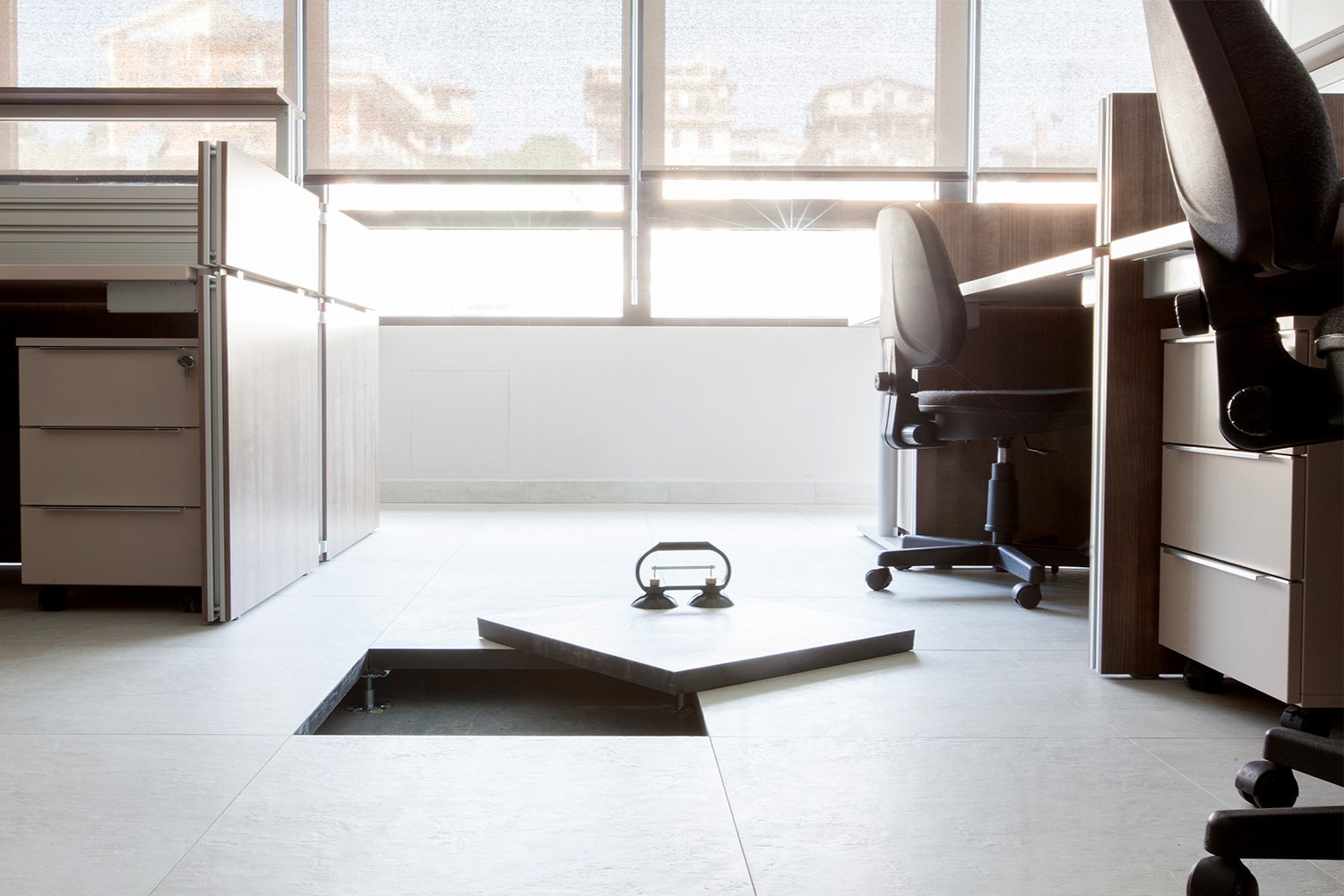 Piso elevado en gres porcelánico Nesite para la nueva sede del Grupo Geri HDP de Roma.