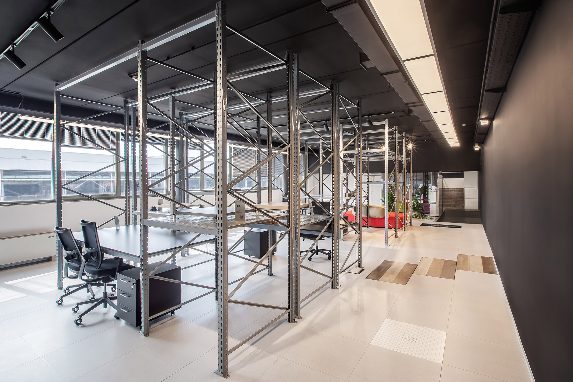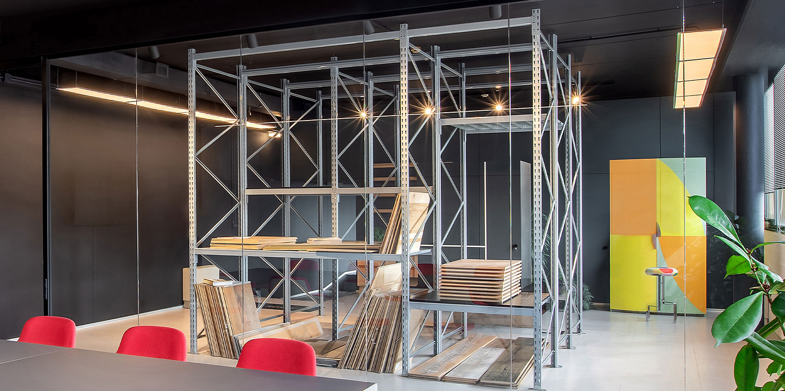 Un espacio de diseño flexible que alberga todas las propuestas de suelo técnico y las soluciones de Nesite Interior: en Sesto San Giovanni, dentro de la sede logística de Transpack.