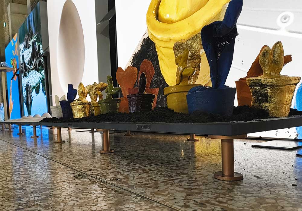 Notre présence à Mater Materia est un acte poétique et de soin, une façon d’habiter l’art à travers la technologie, en transformant la fonctionnalité en langage. Dans ce dialogue entre l’idée et la forme, le système Nesite participe en tant qu’interprète silencieux : les modules de plancher surélevé, conçus et réalisés spécialement pour l’installation, deviennent ainsi des plans de soutien et de sens, des surfaces qui accueillent, préservent et amplifient la relation entre l’œuvre et l’espace.
