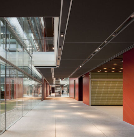 Conçu par Arquitectos Ayala, le nouveau siège de la Banco Popular à Madrid a été conçu selon le protocole du "puits". Avec une orientation le long de l'axe nord-sud, l'objectif de créer un espace de travail agréable, fonctionnel et efficace avec de la lumière naturelle et de grands espaces ouverts a été atteint. Le Banco