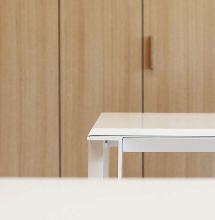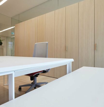 Meubles, conteneurs, cloisons et séparations en bois, cloisons en verre, plafonds métalliques, bureaux de projet en métal et surfaces pleines, tous réalisés sur mesure.