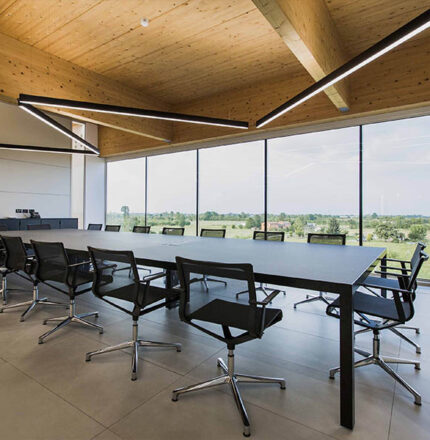 Ferrero Technical Center, le plancher surélevé s’inscrit dans le concept de « l’architecture lente » – emblématique des projets du Studio Frigerio Design Group – en tant que système modulaire et modulable, capable de vivre dans le temps et dans le temps grâce à sa flexibilité, favorisant une utilisation éthique et respectueuse de l’environnement des ressources.