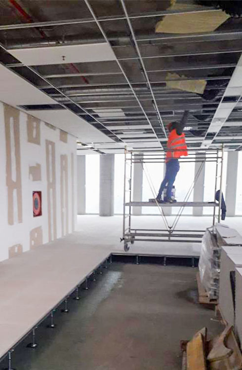 – 25 000 m2 : système composé de panneaux de sulfate de calcium de classe A1, de dimensions 600×600 mm, d’une épaisseur de 30 mm, pour finitions autoportantes.