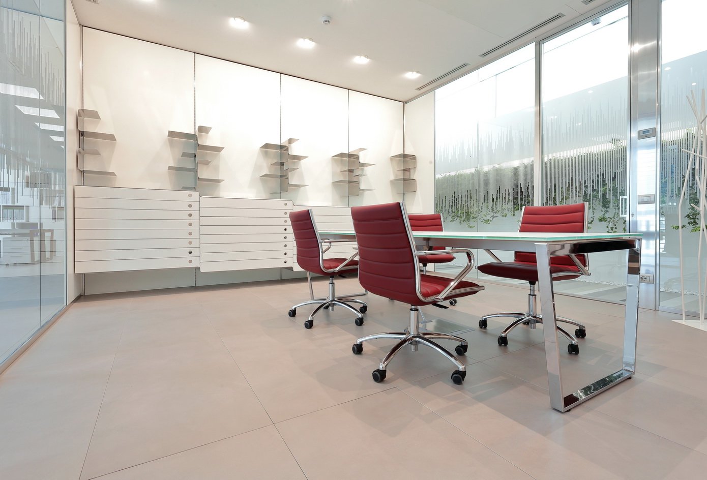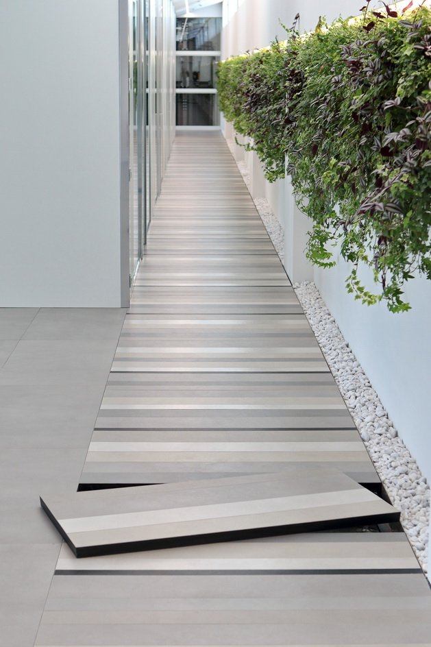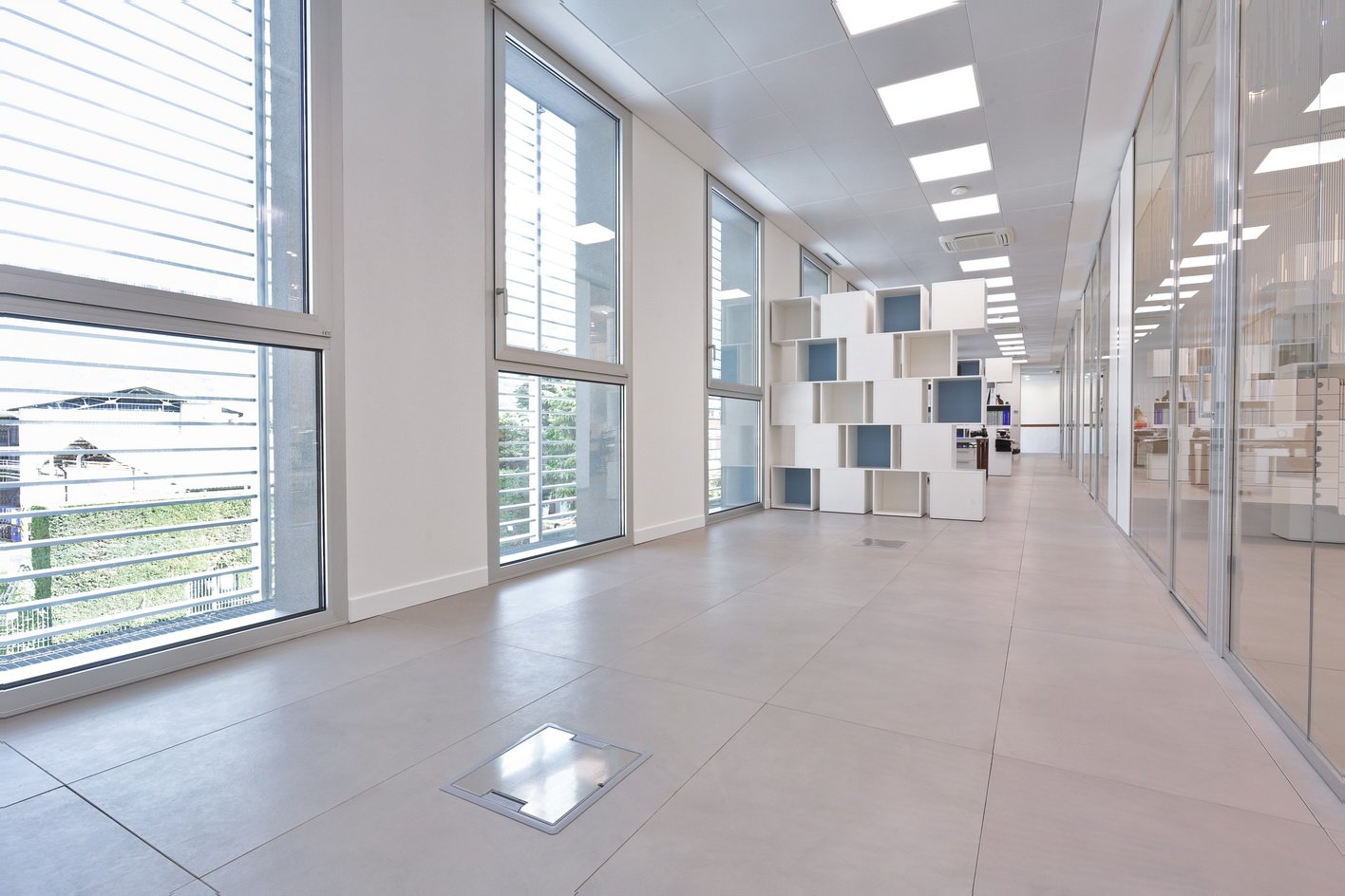 Nesite a réalisé le revêtement de sol du nouveau siège de Thelios, en fournissant une solution composée de panneaux en grès cérame de différents formats.