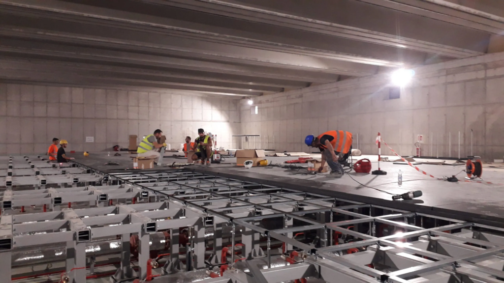Installation de planchers surélevés dans la salle Leonardo – Tecnopolo Bologna (crédits : CINECA)