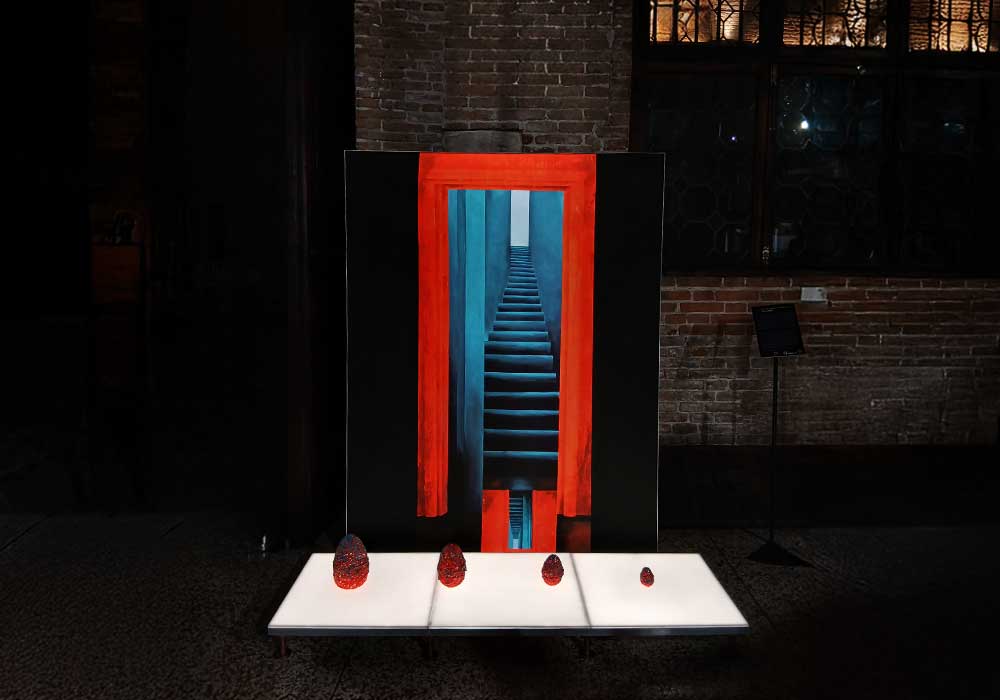 Le opere, tra installazioni luminose, sculture e fotografie, interrogano la relazione tra materia, spazio e coscienza, restituendo al pubblico un’esperienza immersiva dove arte e natura, etica e bellezza, si incontrano.