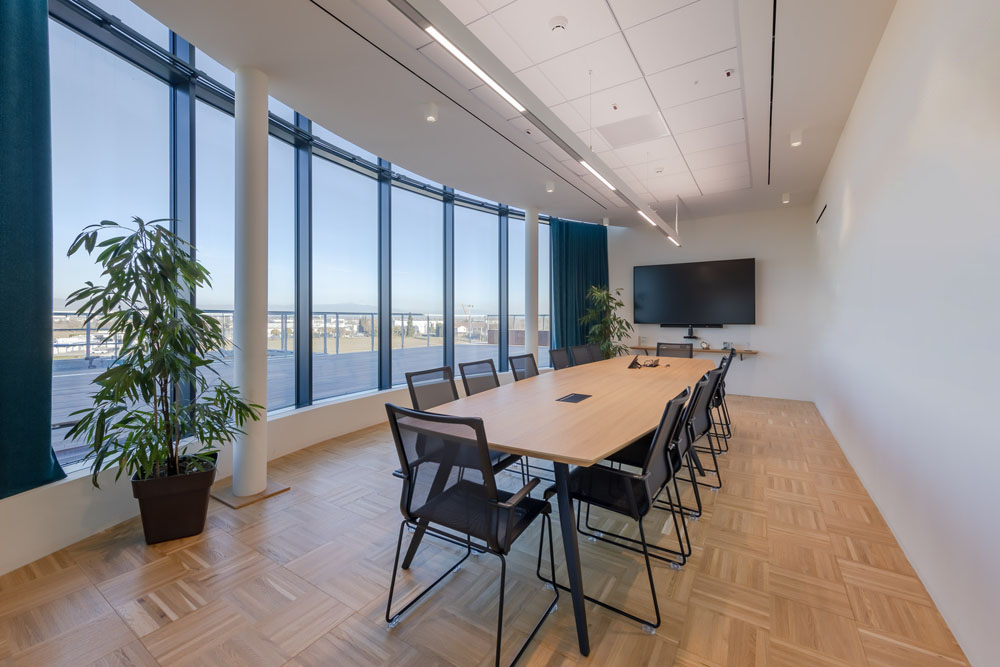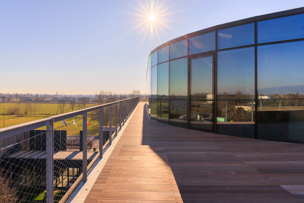 “L’azienda desiderava uno spazio ampio in grado di ospitare molte persone. Per questo abbiamo realizzato un manufatto completamente autonomo rispetto all’edificio sottostante, con una struttura pensata già in fase originaria per supportare i carichi di una futura sopraelevazione”, spiega l’architetto.