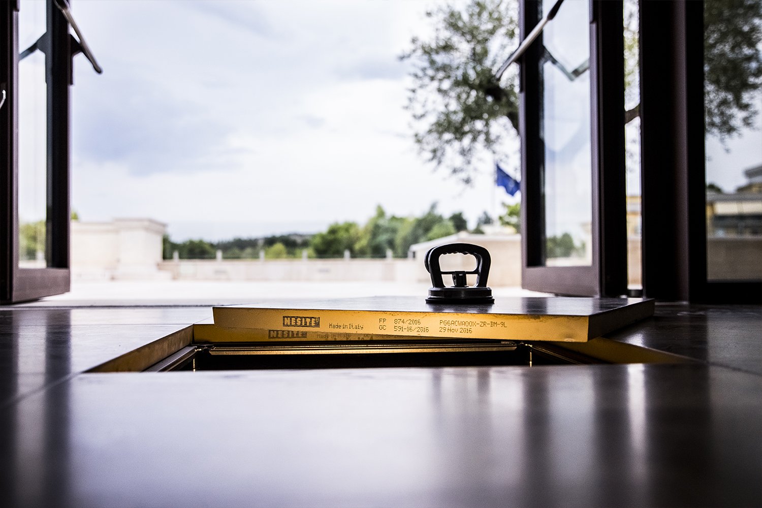 Trattandosi di laboratori chimici, il pannello è stato sottoposto ad una speciale lavorazione del bordo perimetrale (Sistema Labfloor), per la successiva applicazione della sigillatura con apposito mastice elastico che rende il pavimento tenuta stagna ma consente comunque l’ispezionabilità del plenum sottostante.