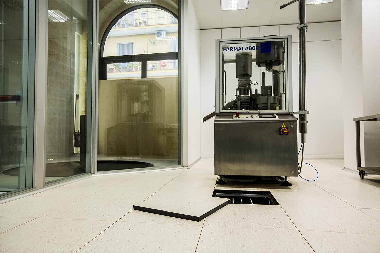 - Fornitura e installazione di pavimento sopraelevato sigillato (Sistema Labfloor) nell’area produttiva;