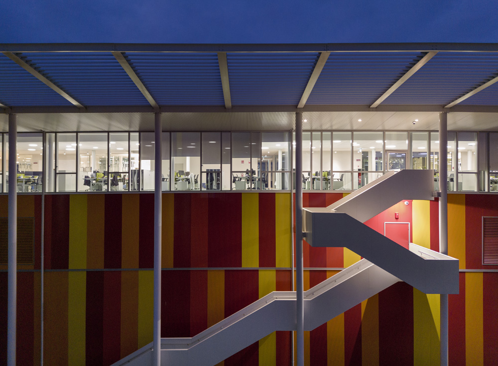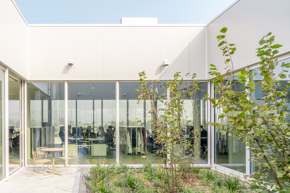 Il nuovo polo è un edificio bioclimatico e certificato nZEB (nearly Zero Energy Building), che si estende su 12.700 mq ed ospita oltre 200 dipendenti. La sua architettura, che racchiude la convivenza tra le funzioni direzionali ed operative, riporta un design semplice e lineare, celando alla vista impianti e parti tecniche. Il volume compatto invece, massimizza tutti gli apporti passivi e limita le risorse per la sua gestione e manutenzione. Sicurezza e comfort sensoriale infine, i valori su cui si sviluppa l’intero complesso.