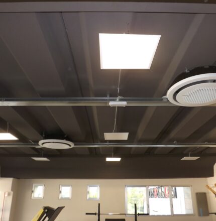La pavimentazione Nesite dell’intera superficie è stata completata in 7 giorni lavorativi. Grande attenzione è stata prestata nella posa dei pavimenti e nella realizzazione delle pareti in cartongesso: si sono progettati e realizzati particolari rinforzi nei punti maggiormente stressati dall’impiego di pesistica o attrezzi sottoposti a sforzi elevati.