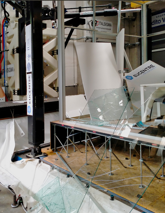 Il test si è concluso con il cedimento di tutti gli elementi non strutturali, ad eccezione del nostro pavimento sopraelevato, opportunatamente integrato da tecnologie antisismiche per l’evento.